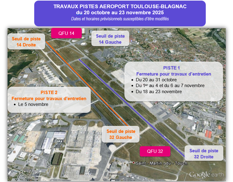 Fermeture piste 1 du 20/10/2025 au 23/11/2025 pour travaux